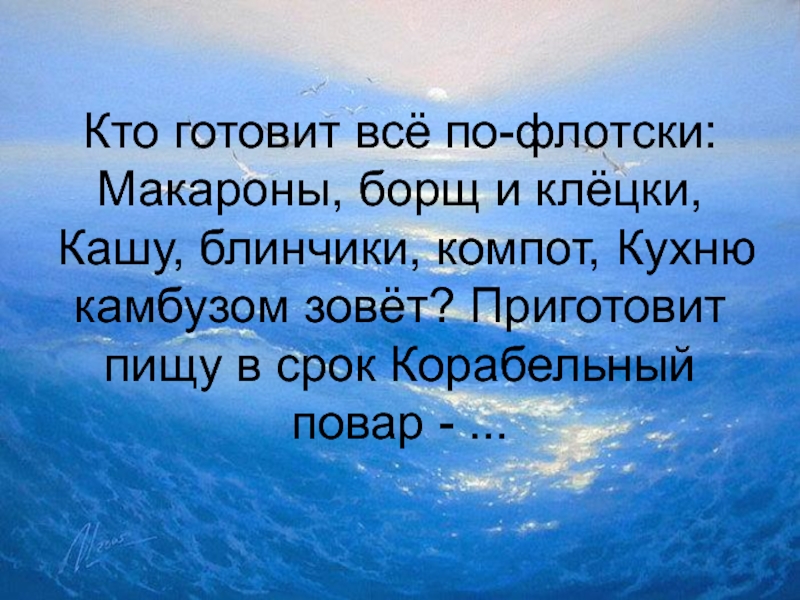 Кухню камбузом зовёт? Приготовит пищу в срок Корабельный повар - ...