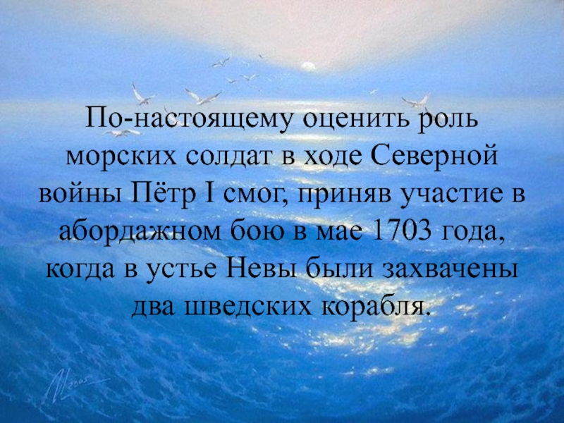 Слайд 12По-настоящему оценить роль морских солдат в ходе Северной войны Пётр I