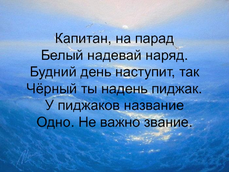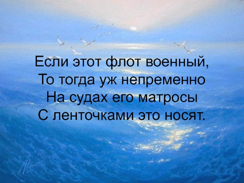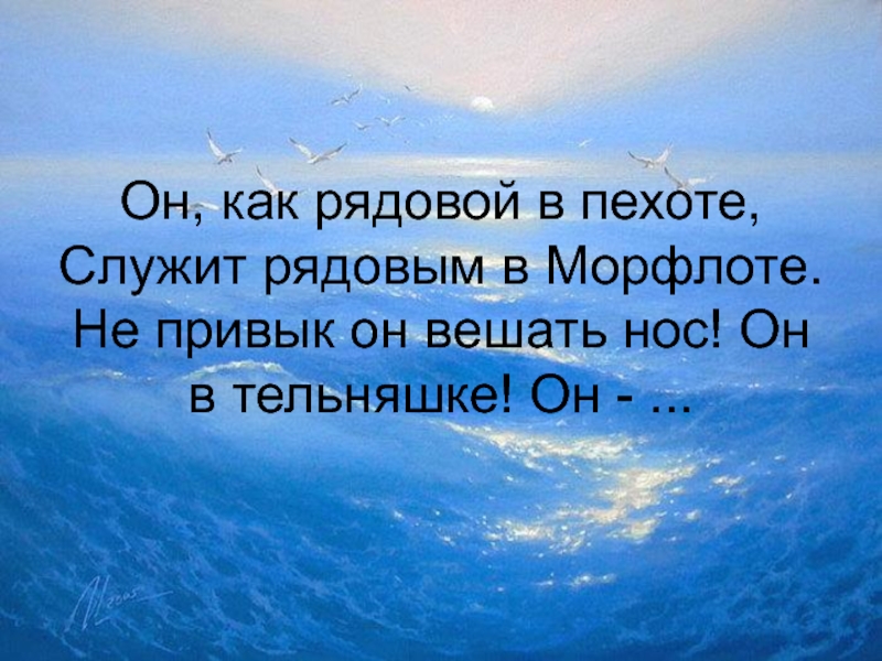Слайд 22Он, как рядовой в пехоте, Служит рядовым в Морфлоте. Не привык