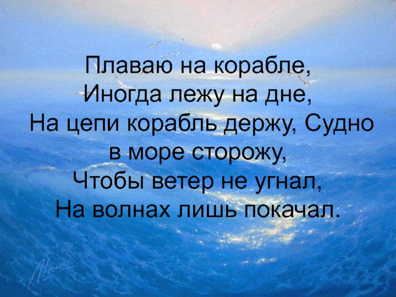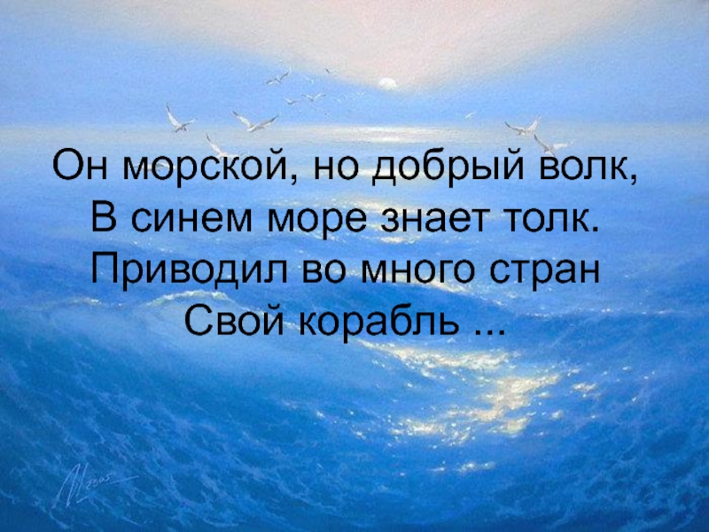 Слайд 24Он морской, но добрый волк, В синем море знает толк. Приводил