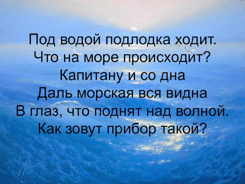 Слайд 34Под водой подлодка ходит. Что на море происходит? Капитану и со