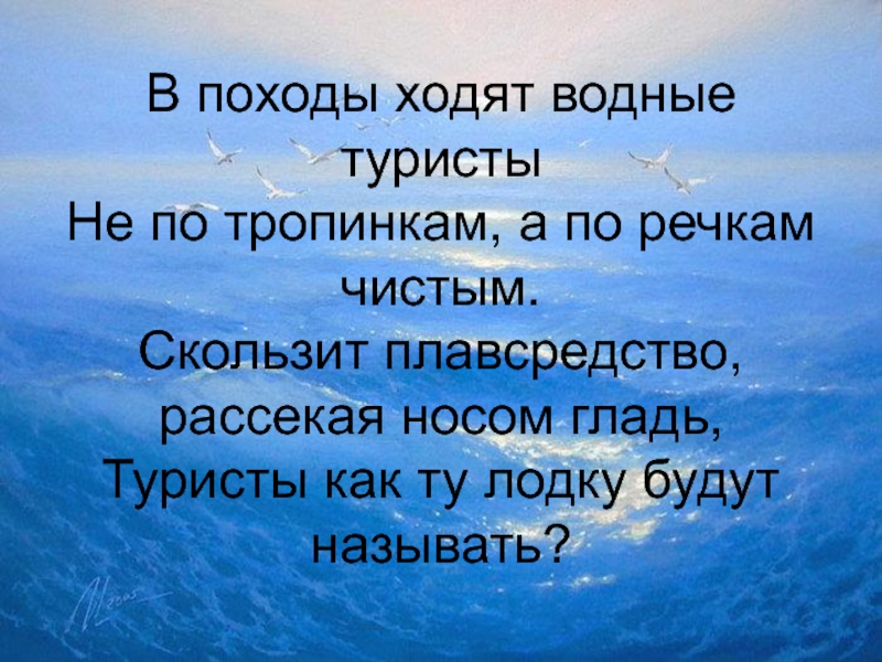 Скользит плавсредство, рассекая носом гладь, Туристы как ту лодку будут называть?