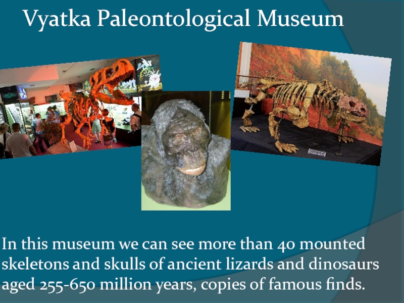 Vyatka Paleontological Museum  In this museum we can see more than 40 mounted skeletons and skulls