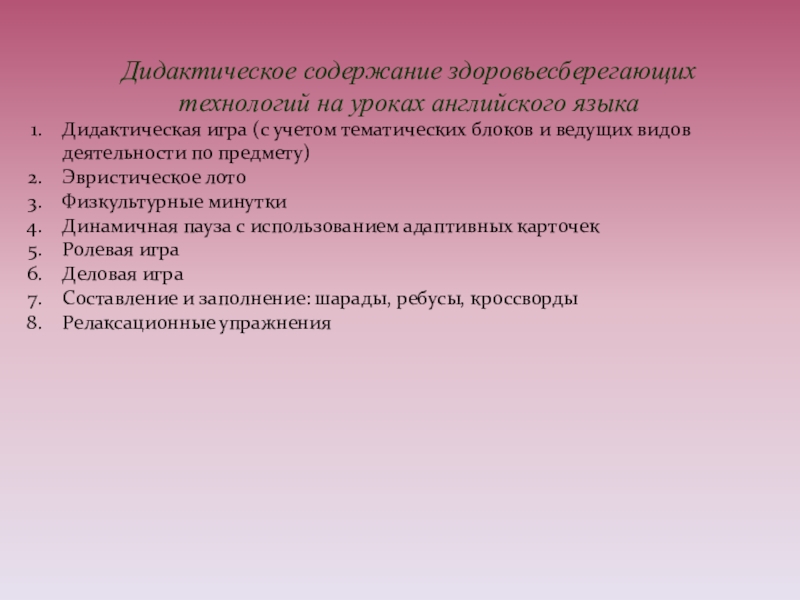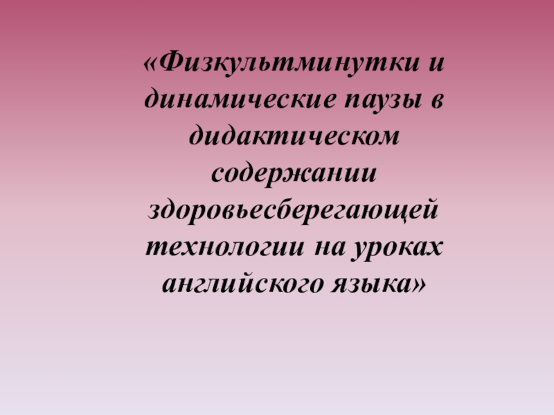 «Физкультминутки и динамические паузы в дидактическом содержании здоровьесберегающей технологии на уроках английского языка»