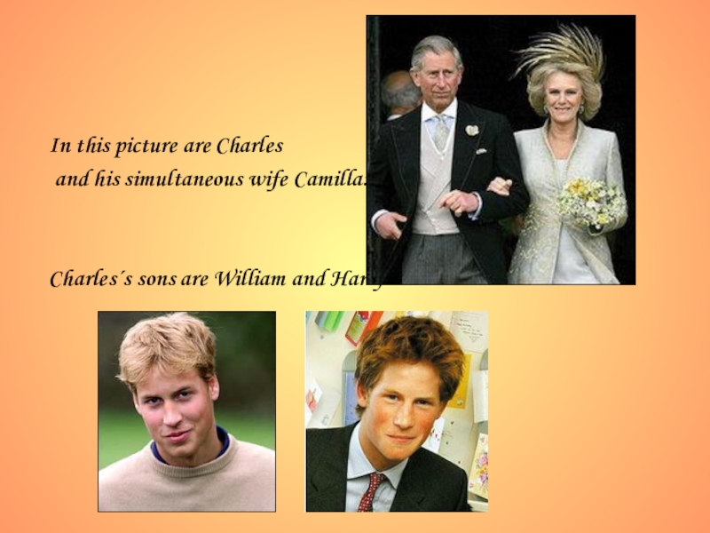 In this picture are Charles and his simultaneous wife Camilla:Charles´s sons are William and Harry: