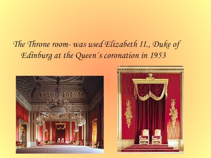 The Throne room- was used Elizabeth II., Duke of Edinburg at the Queen´s coronation in 1953