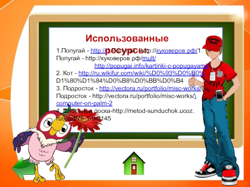 Использованные ресурсы:1.Попугай - http://1.Попугай - http://куковеров.рф/1.Попугай - http://куковеров.рф/mult/