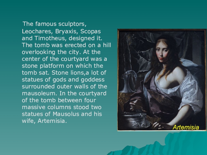 Слайд 14 The famous sculptors, Leochares, Bryaxis, Scopas and Timotheus, designed