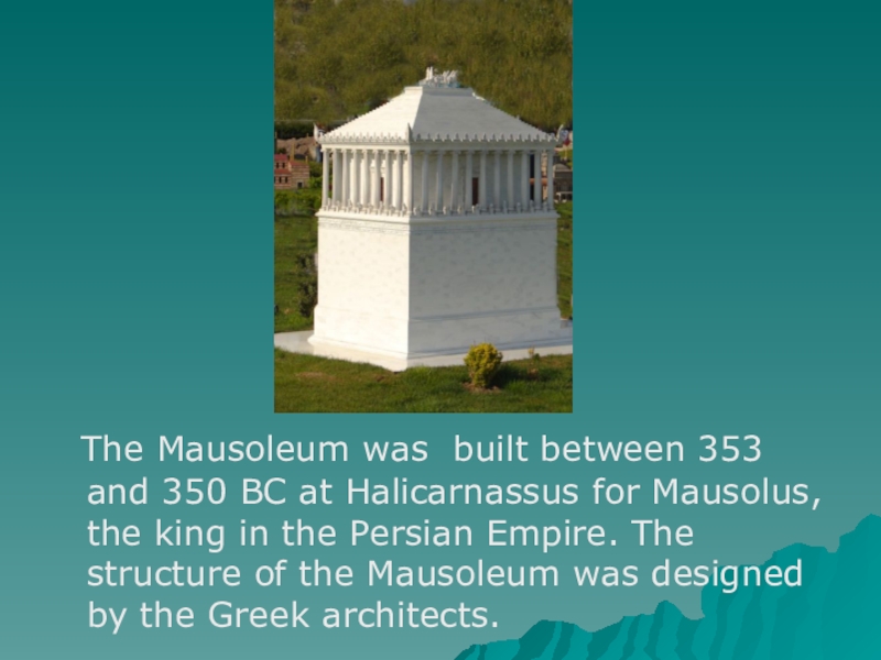 Слайд 13 The Mausoleum was built between 353 and 350 BC at
