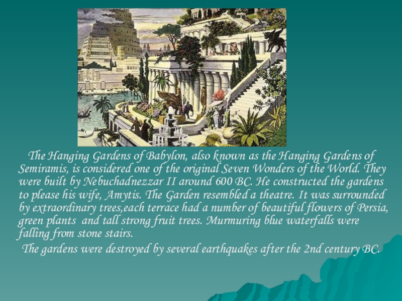 Слайд 21 The Hanging Gardens of Babylon, also known as the Hanging