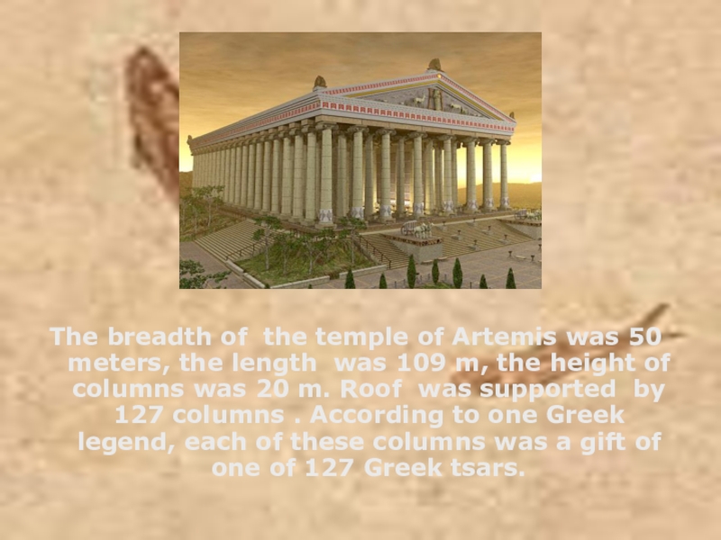 Слайд 10The breadth of the temple of Artemis was 50 meters, the