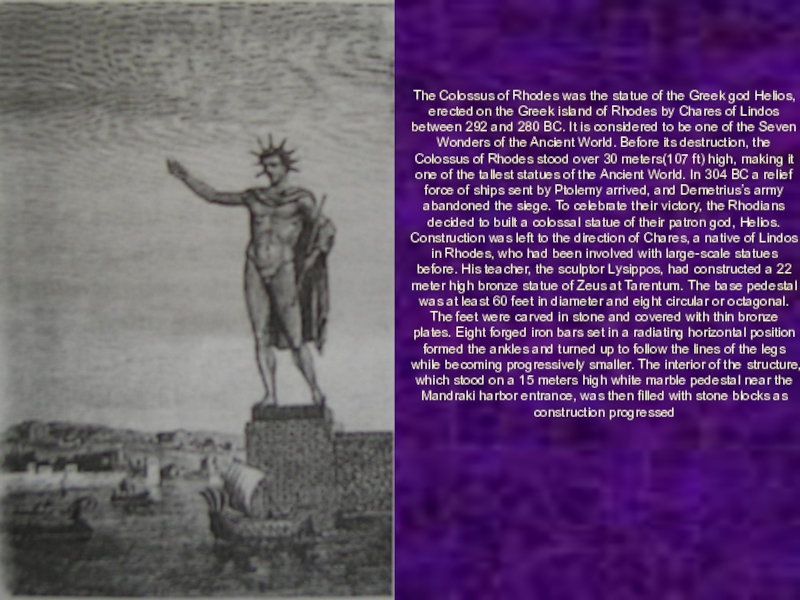 Слайд 17The Colossus of Rhodes was the statue of the Greek god