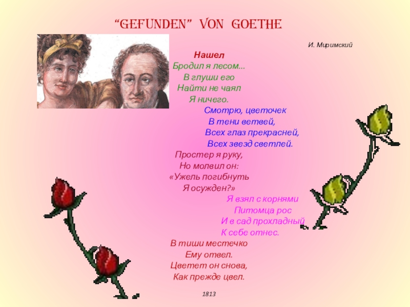 Мало кто из поэтов обогатил сокровищницу любовной лирики столь щедро , как Гете.