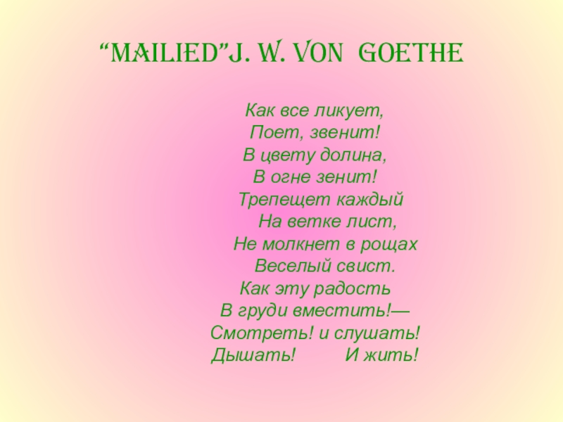 Слайд 24Wanderers Nachtlied J.W. von Goethe