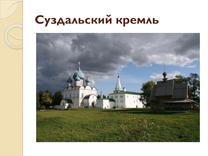 Суздальский кремль — древнейшая часть города, ядро Суздаля, археологически существующее с X века, а по летописям — 1024 г. Расположен Кремль в излучине реки Каменка, в южной части города. Кремль сохранил земляные валы и рвы древней крепости, несколько церквей и ансамбль архирейского двора с древним Рождественским собором.