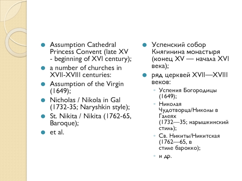 Успенский собор Княгинина монастыря (конец XV — начала XVI века);