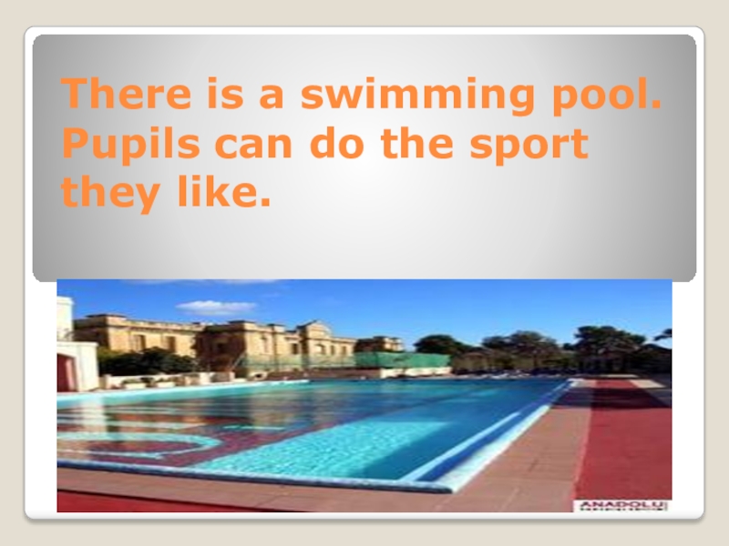 Слайд 6There is a swimming pool. Pupils can do the sport they