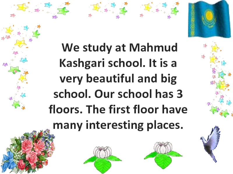Слайд 3 We study at Mahmud Kashgari school. It is a very