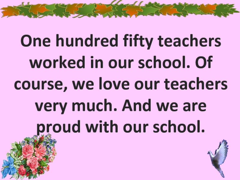 Слайд 11One hundred fifty teachers worked in our school. Of course, we