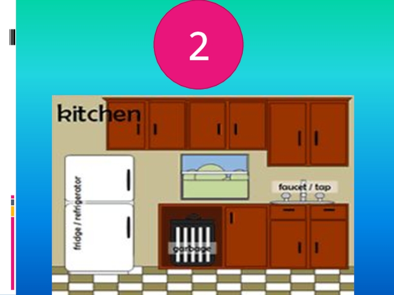 2. We cook dinner, wash up dishes there. There is cooker a fridge, a dishwasher there. There are plates, cups, cupboards there.