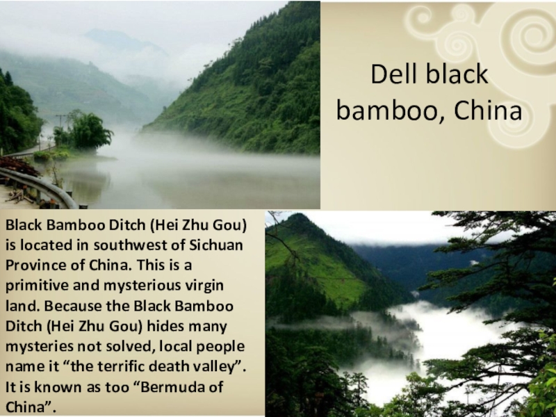 in southwest of Sichuan Province of China. This is a primitive and mysterious virgin land. Because the Black Bamboo Ditch (Hei Zhu Gou) hides many mysteries not solved, local people name it “the terrific death valley”. It is known as too “Bermuda of China”.