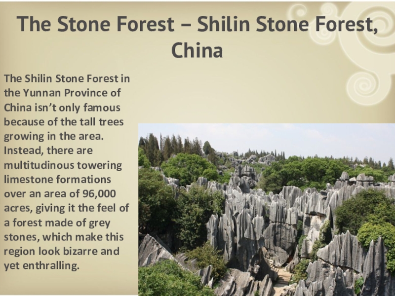 Слайд 3The Stone Forest – Shilin Stone Forest, China
