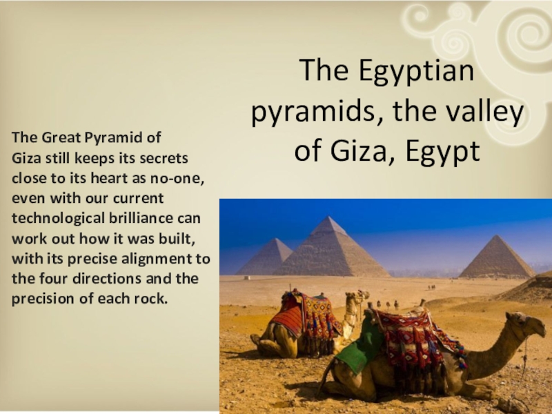 Слайд 19The Egyptian pyramids, the valley of Giza, Egypt