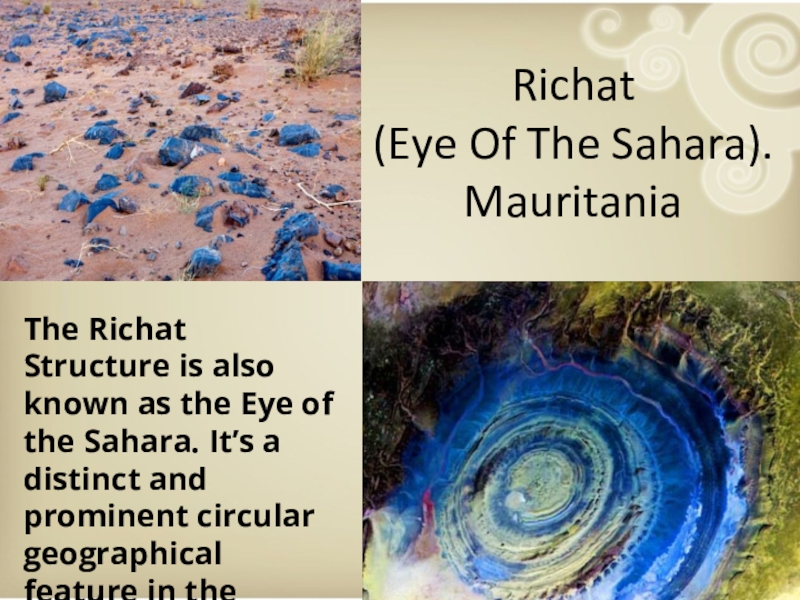 as the Eye of the Sahara. It’s a distinct and prominent circular geographical feature in the Sahara Desert.