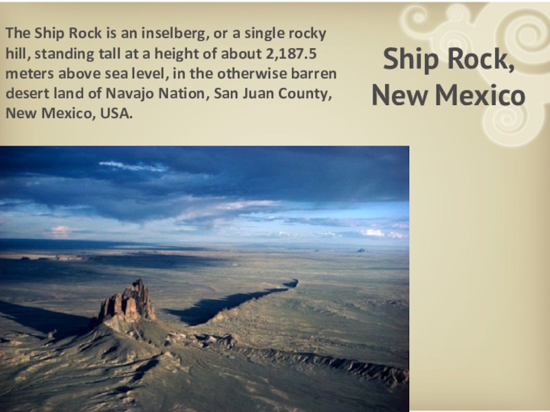 single rocky hill, standing tall at a height of about 2,187.5 meters above sea level, in the otherwise barren desert land of Navajo Nation, San Juan County, New Mexico, USA.
