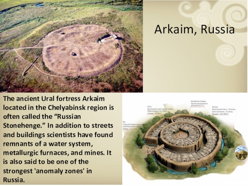 is often called the “Russian Stonehenge.” In addition to streets and buildings scientists have found remnants of a water system, metallurgic furnaces, and mines. It is also said to be one of the strongest 'anomaly zones' in Russia.