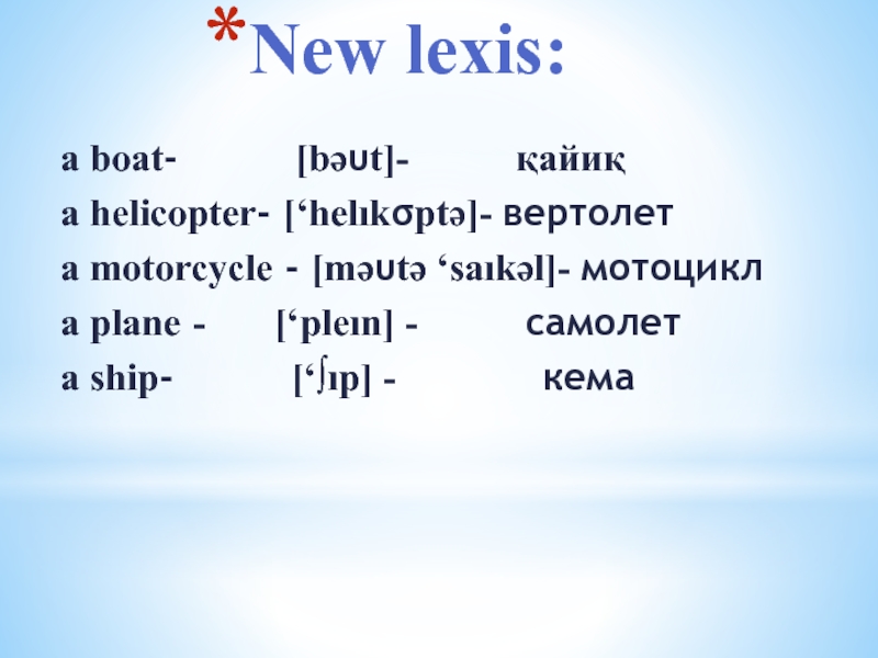 Слайд 10a motorcycle–[‘məutə‘saikəl]