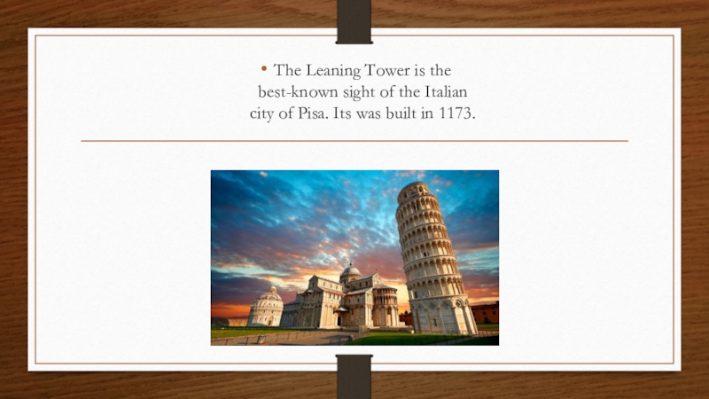 Слайд 2The Leaning Tower is the best-known sight of the Italian city