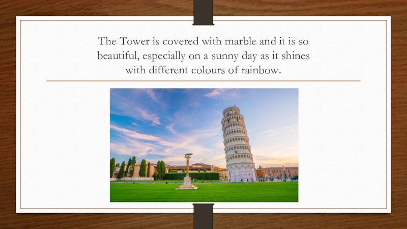 Слайд 4The Tower is covered with marble and it is so beautiful,