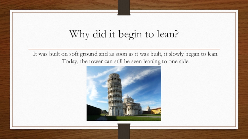 Why did it begin to lean?It was built on soft ground and as soon as it was