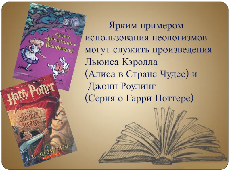Найти примеры Neologism в произведениях Л. Кэролла и Дж. Роулинг
