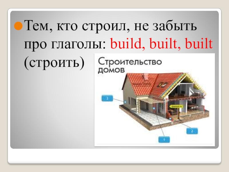 Слайд 5Тем, кто строил, не забыть про глаголы: build, built, built (строить)