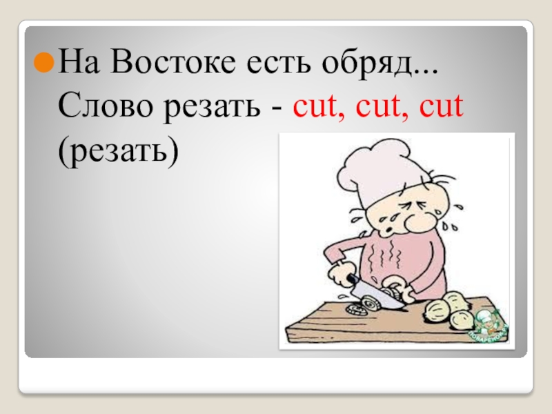 Слайд 11На Востоке есть обряд... Слово резать - cut, cut, cut (резать)