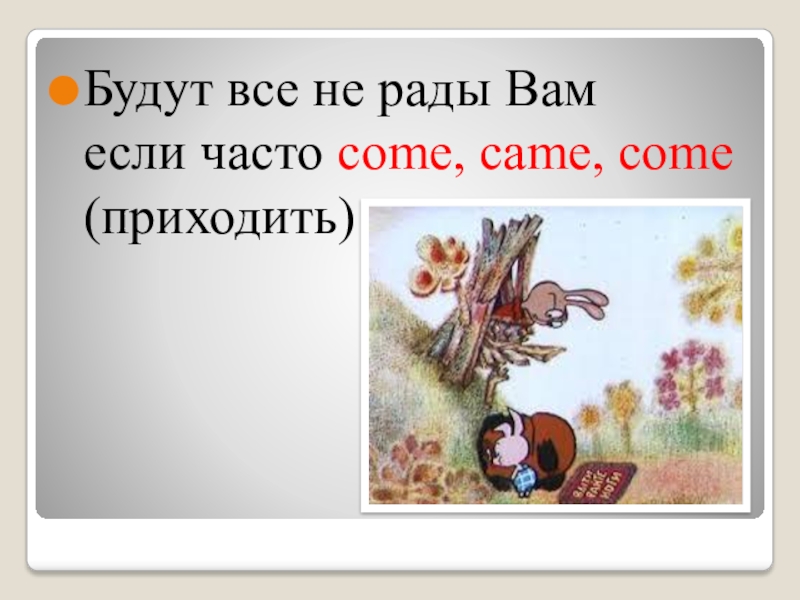 Слайд 9Будут все не рады Вам если часто come, came, come (приходить)