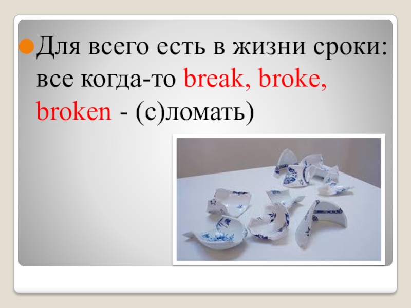 Слайд 3Для всего есть в жизни сроки: все когда-то break, broke, broken -