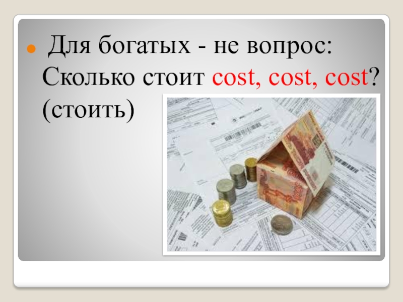 Слайд 10 Для богатых - не вопрос: Сколько стоит cost, cost, cost? (стоить)