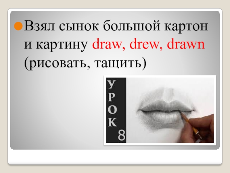 Взял сынок большой картон и картину draw, drew, drawn (рисовать, тащить)