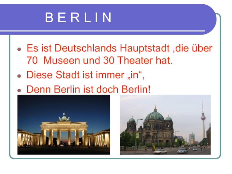 ist Deutschlands Hauptstadt ,die über 70 Museen und 30 Theater hat.