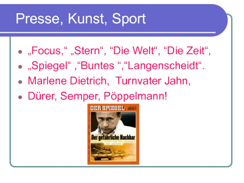 „Spiegel“ ,“Buntes “,“Langenscheidt“.
