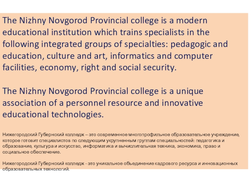 Date of founding of the educational organization—”The Nizhny Novgorod Provincial college”.