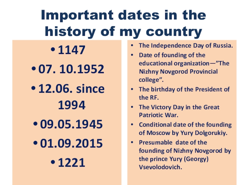 Presumable date of the founding of Nizhny Novgorod by the prince Yury (Georgy) Vsevolodovich.