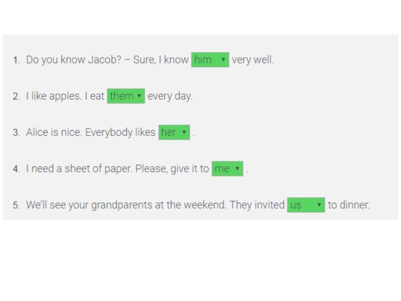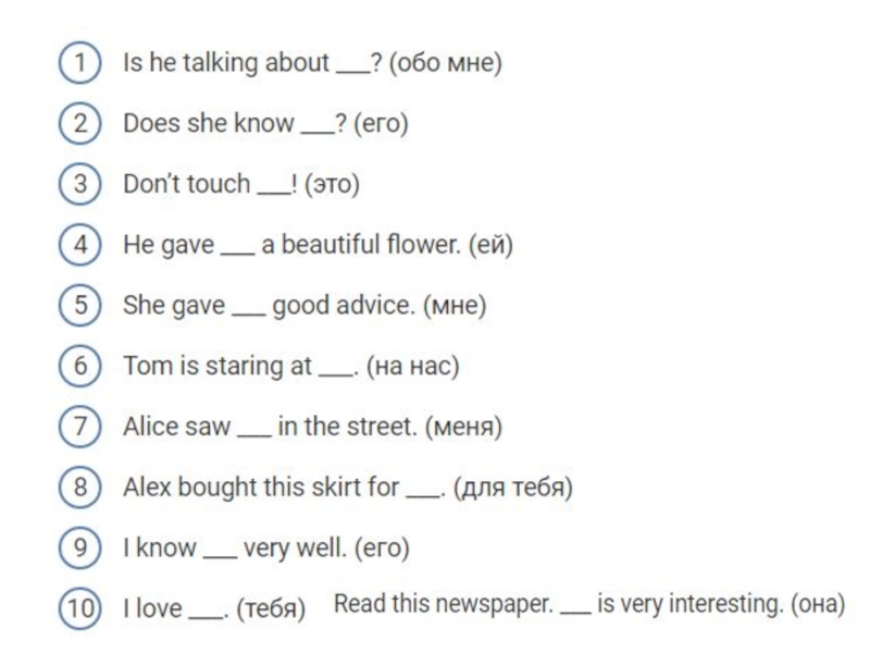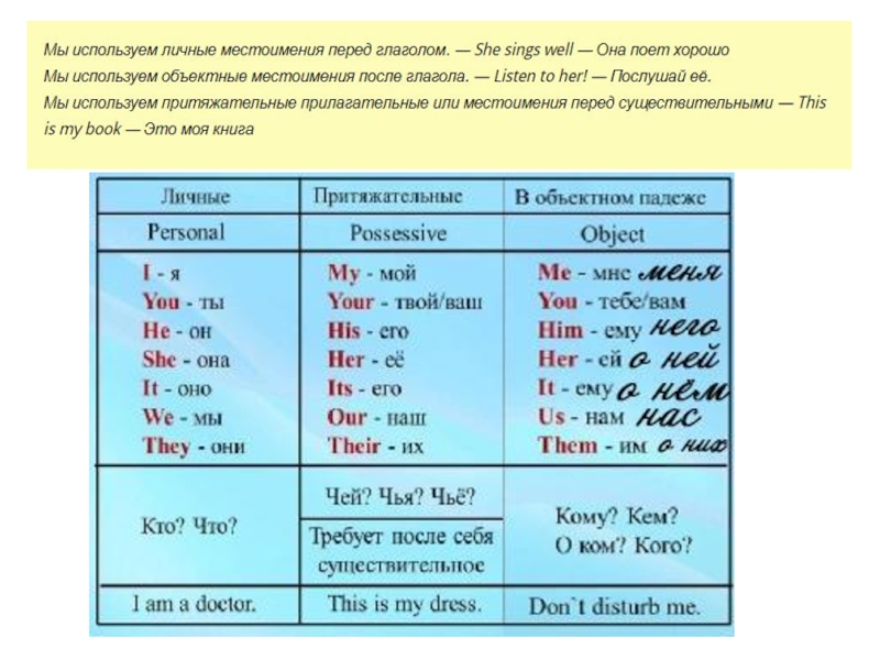 Объектные местоимения в английском языке  (Object Pronouns)