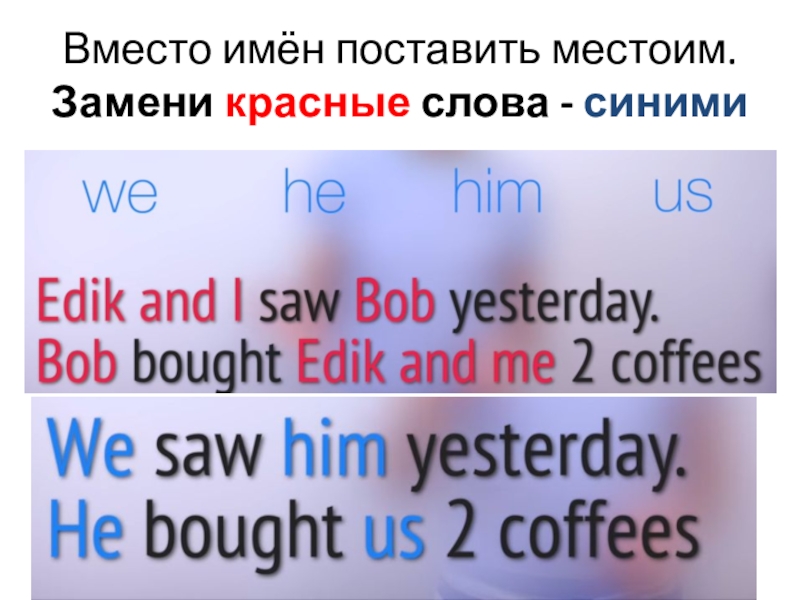 Вместо имён поставить местоим. Замени красные слова - синими