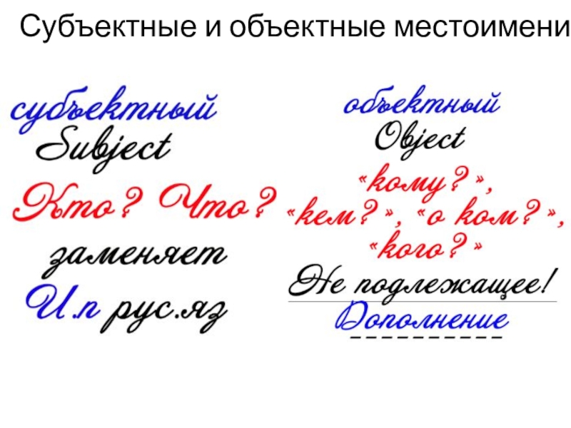 Слайд 2Субъектные и объектные местоимения