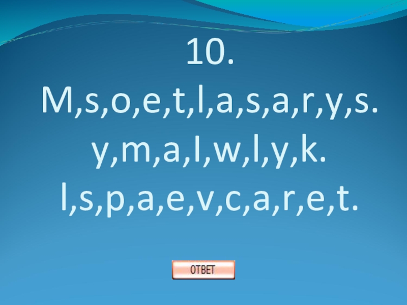 Слайд 2410. M,s,o,e,t,l,a,s,a,r,y,s. y,m,a,I,w,l,y,k. l,s,p,a,e,v,c,a,r,e,t.