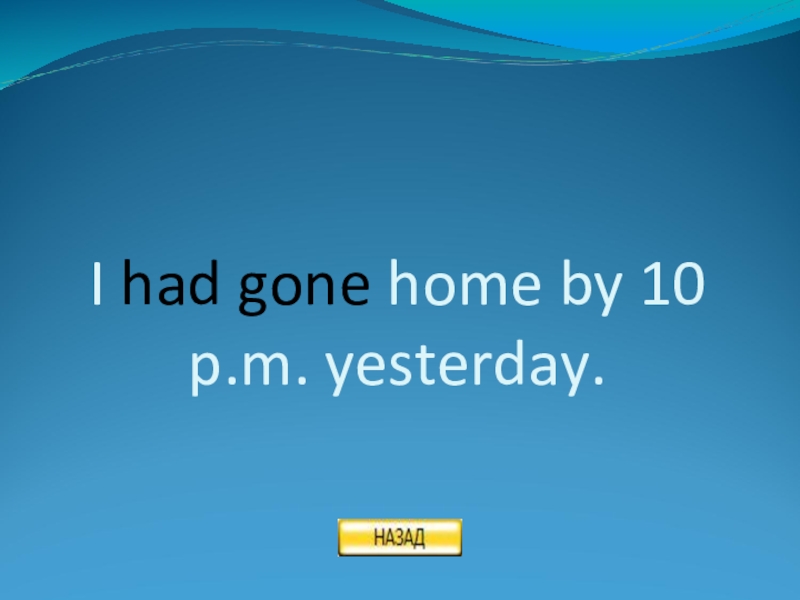 Слайд 41.I (go) home by 10 p.m. yesterday. ( Past Perfect)